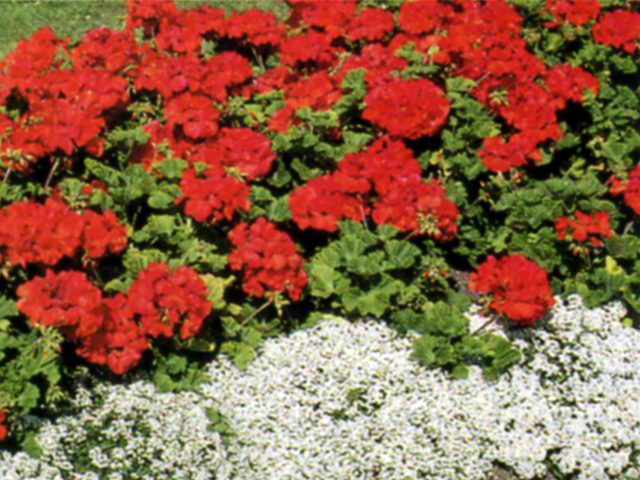Rounded clusters of bright flowers in red, pink, salmon, orange, violet, white, and bi-colors from spring to fall. Geraniums need protection from the hot afternoon sun; morning sun and afternoon shade are best. This annual grows to be 16-24" tall and 12-18" wide.