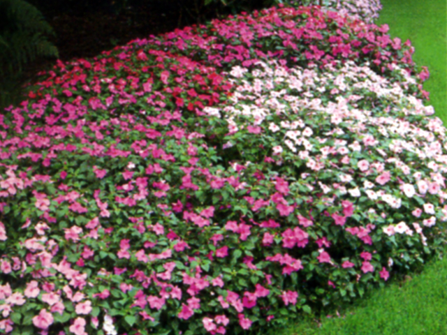 Free blooming plants with a single or double flowers in shades of red, pink, orange, white, purple, and lavender. Blooms from spring to frost in full to partial shade averaging 12-24" high and 12-15" across. Protect from hot midday and afternoon sun.