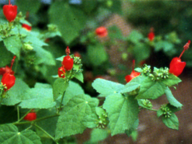 Showy bright red flowers that never completely open from late spring through fall. Full sun to partial shade works best; Turk"s Caps are heat tolerant and use little water. The shrub-like perennial that averages 4-5" high and 3-4" across. Dies to the ground in winter but emerges again in the spring when their flowers attract hummingbirds.