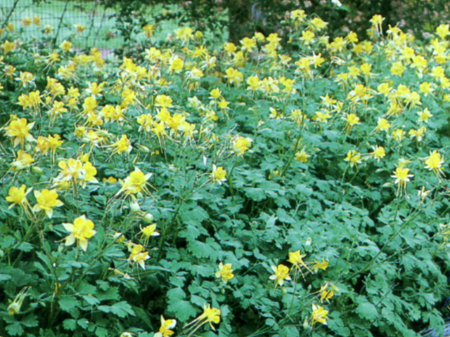 Large, bright yellow flowers bloom in late spring. This variety is able to tolerate hot weather in filtered shade, unlike many Columbines. Average size is 3-4" high and 24-30" wide. Excellent choice in the perennial garden as it is long-lived and re-seeds freely. Attracts hummingbirds.
